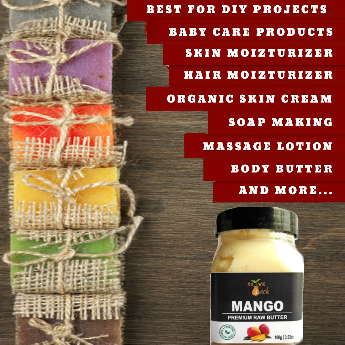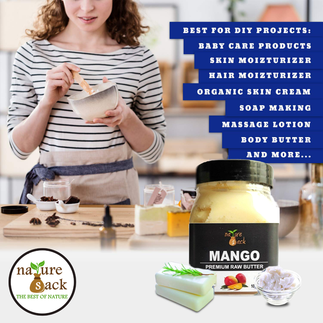 + Free ShippingNatureSack Mango butter is cold pressed from mango seed kernels. Mango butter extracted is raw and unrefined. Mango seed butter is rich in vitamins A,B,C,D & E, antioxidant and essential fatty acids.